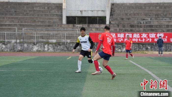 中新网云浮2月24日电 (蔡敏婕 陈媚馨)中国云安区——韩国海南郡足球交流赛23日在广东云浮举行,逾30名中韩青年球员在绿茵场上以“球”为媒进行交流。